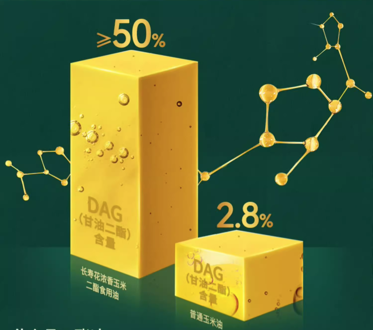 二酯食用油替換傳(chuan) 統食用油,是順應健康趨勢的新選擇。二酯油的品質取決(jue) 於(yu) 食用油中甘油二酯的含量,占比越高,更具健康屬性。米兰体育DAG二酯食用油,在風味方麵與(yu) 傳(chuan) 統食用油相同,不需要改變飲食習(xi) 慣,就能降低傳(chuan) 統食用油中“甘油三酯”帶來的健康風險,滿足大家的健康需求,是更具價(jia) 值的健康選擇!