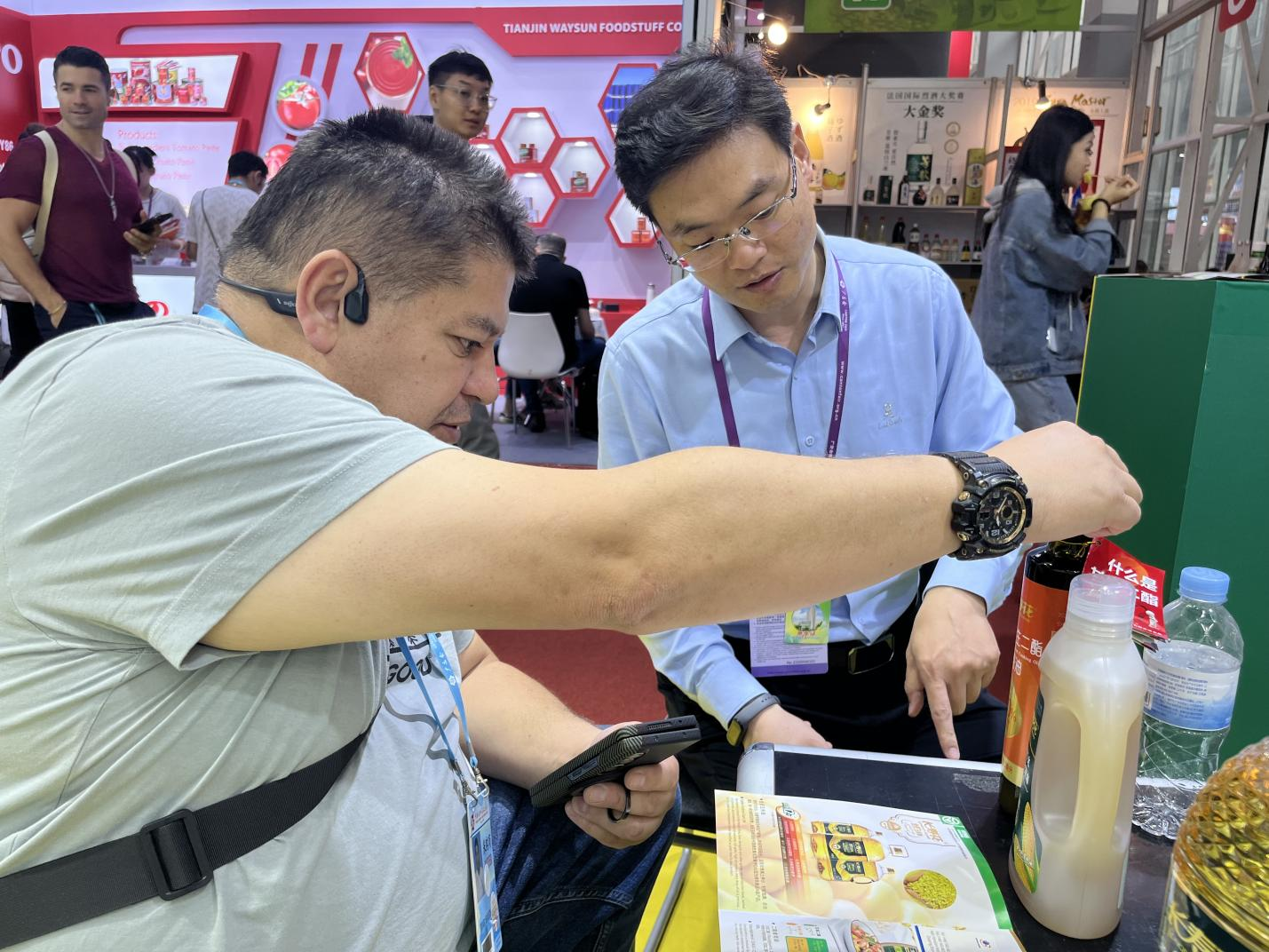 大幕開啟,萬(wan) 商雲(yun) 集。境外采購商踴躍與(yu) 會(hui) ,現場洽談成交活躍。參加過四屆廣交會(hui) 的歐洲采購商Mr Ernesto Tovar說:“在廣交會(hui) 上,我能接觸到很多優(you) 秀的中國製造商,它們(men) 對產(chan) 品的投入力度很大,我非常相信中國產(chan) 品。這次米兰体育食品的二酯係列食用油也讓我驚喜滿滿,二酯油吃油不存油,是非常健康的產(chan) 品”。